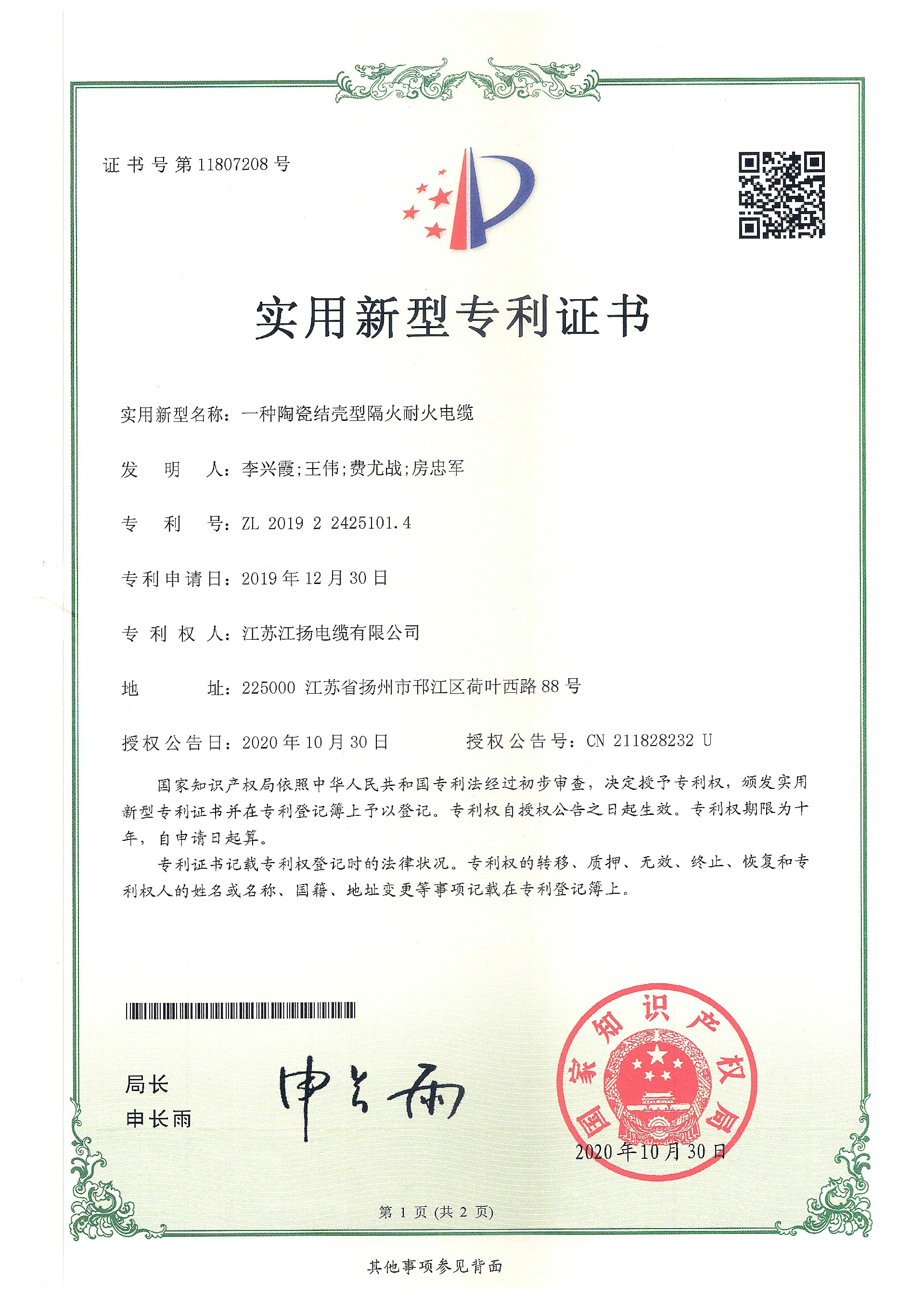 一种陶瓷结壳型隔火耐火电缆