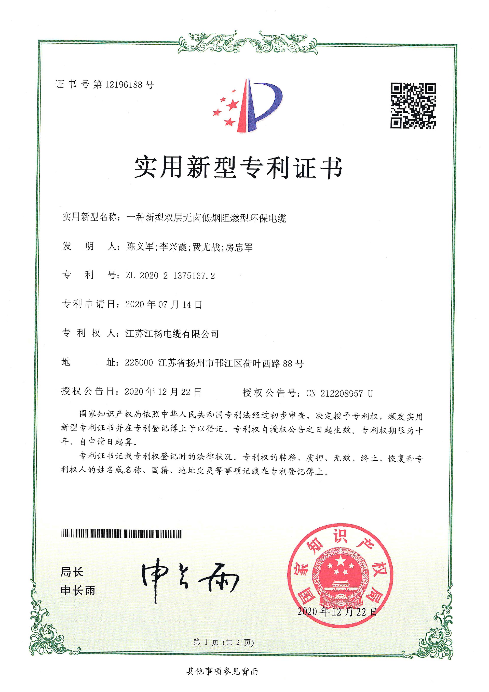 一种新型双层无卤低烟阻燃型环保电缆