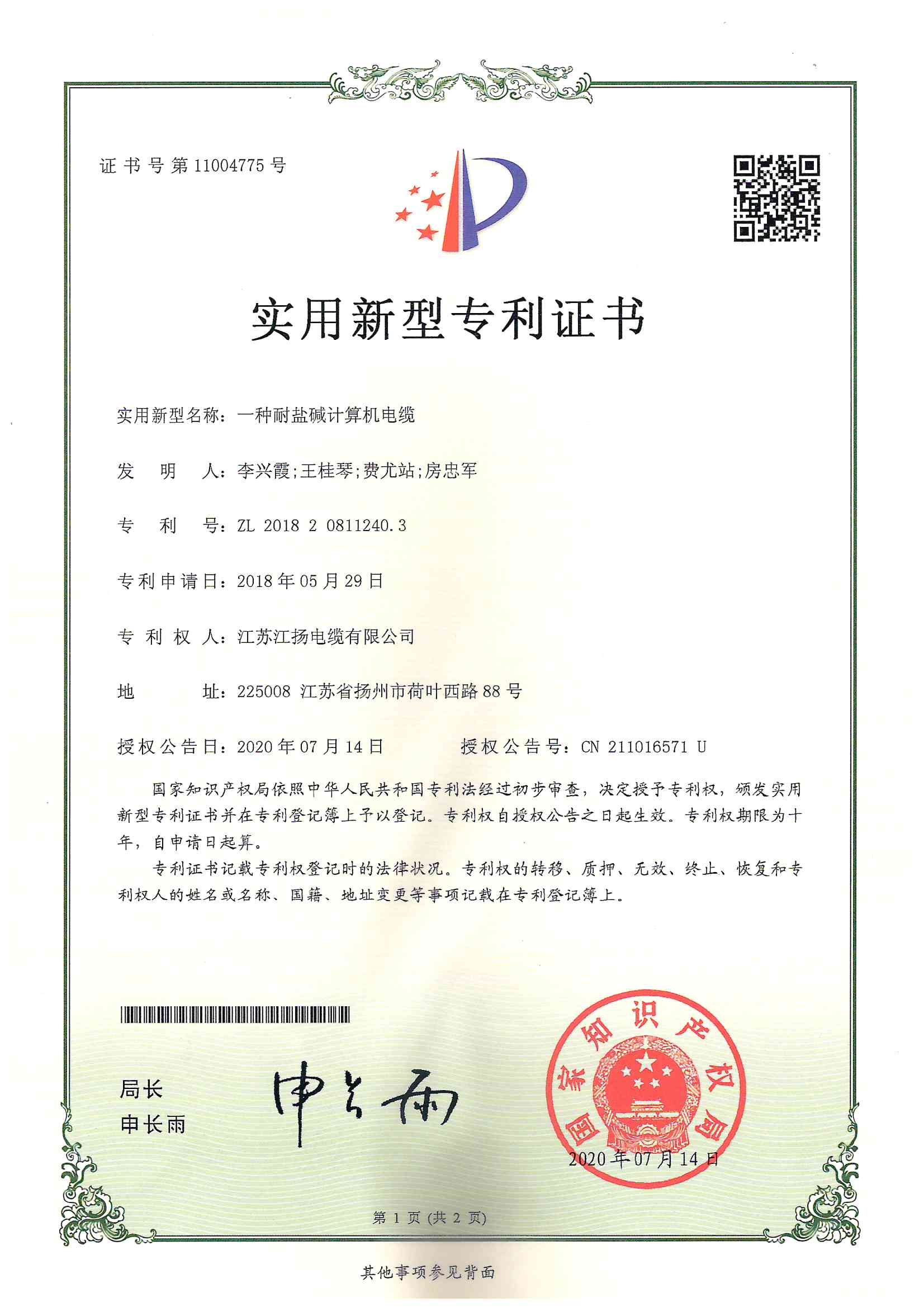 专利--一种耐盐碱计算机电缆