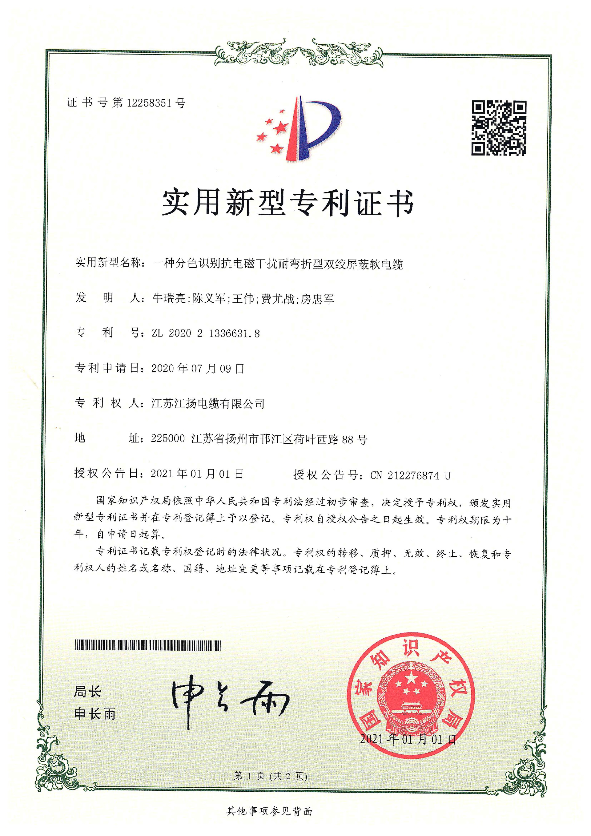 一种分色识别抗电磁干扰耐弯折型双绞屏蔽软电缆