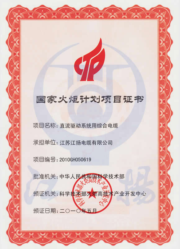 国家火炬计划证书