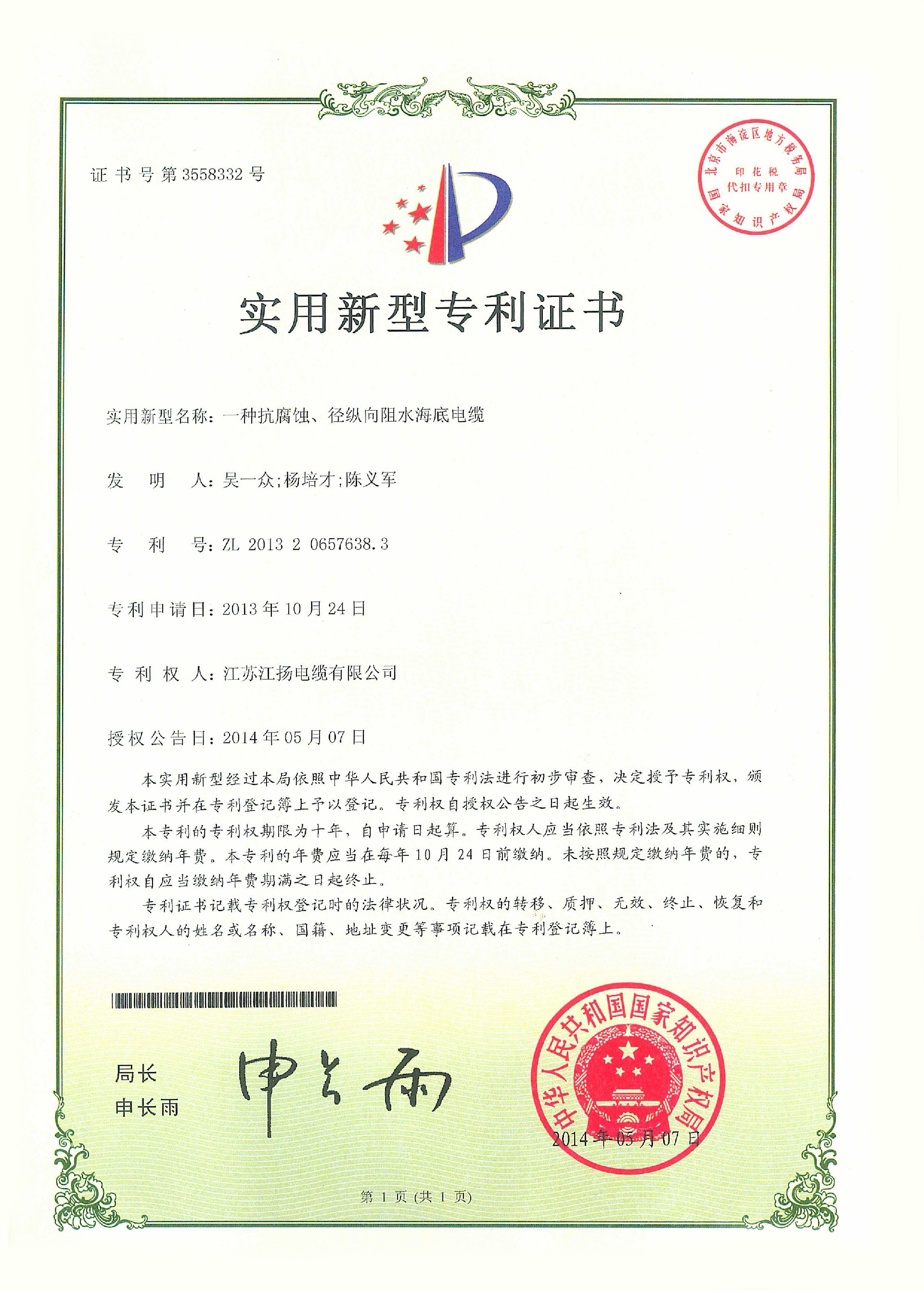 一种抗腐蚀、径纵向阻水海底电缆