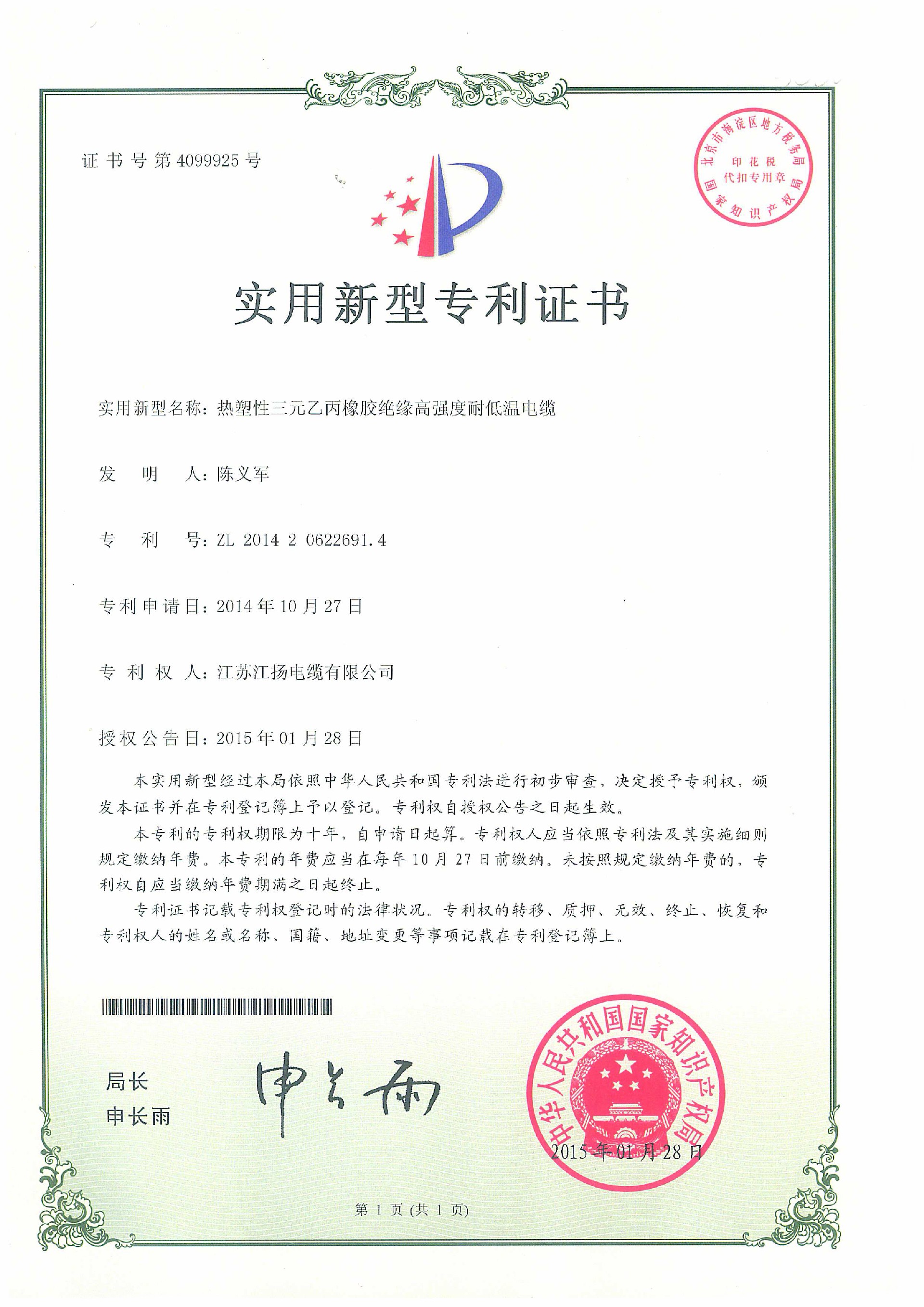 热塑性三元乙丙橡胶绝缘高强度低温电缆