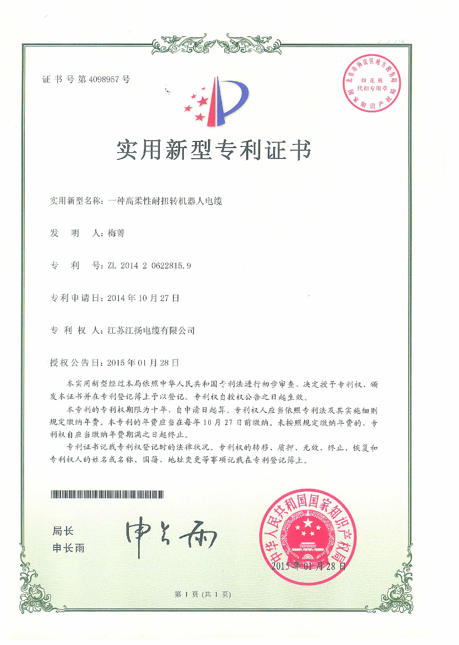一种高柔性耐扭转机器人电缆