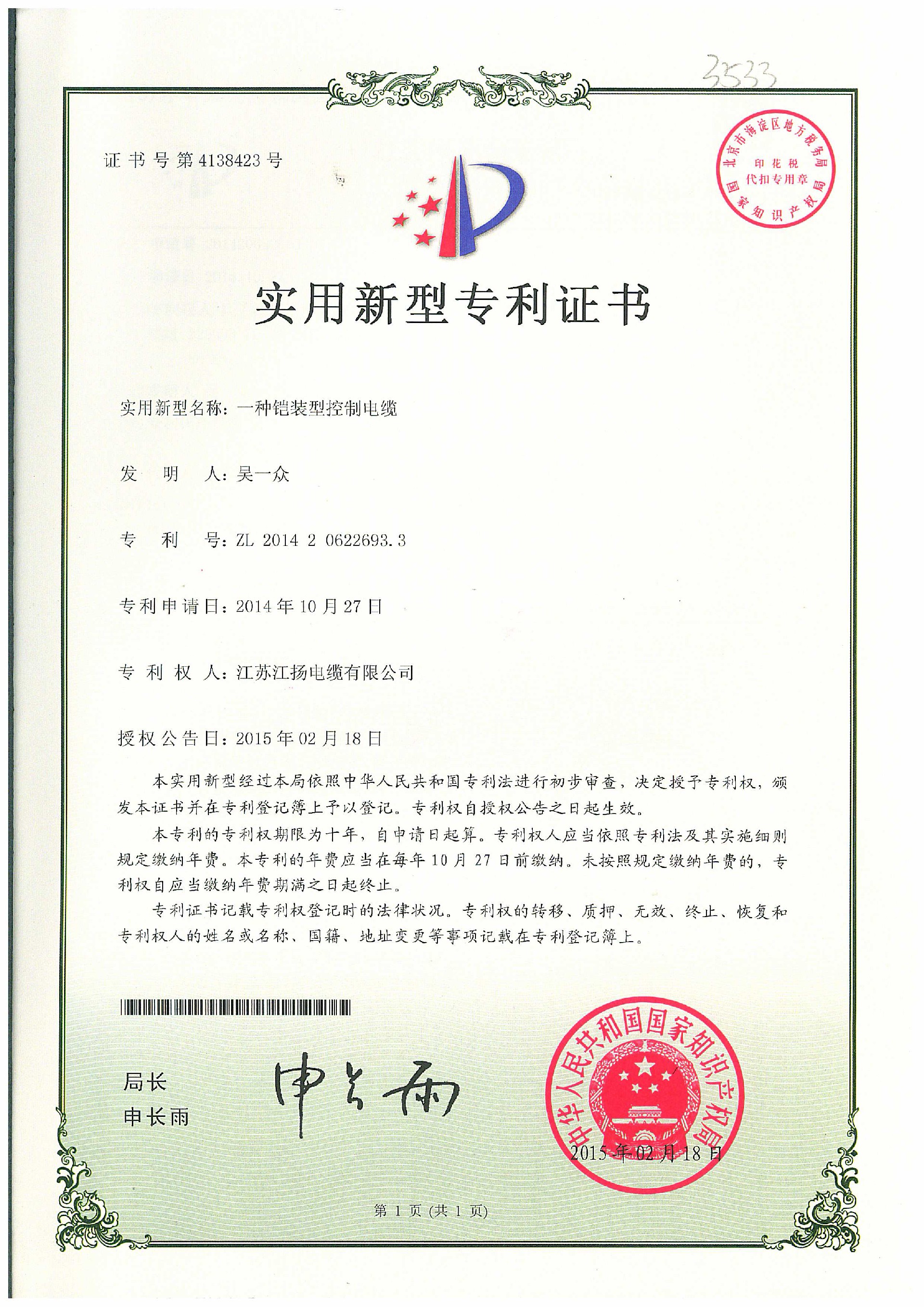 一种铠装型控制电缆